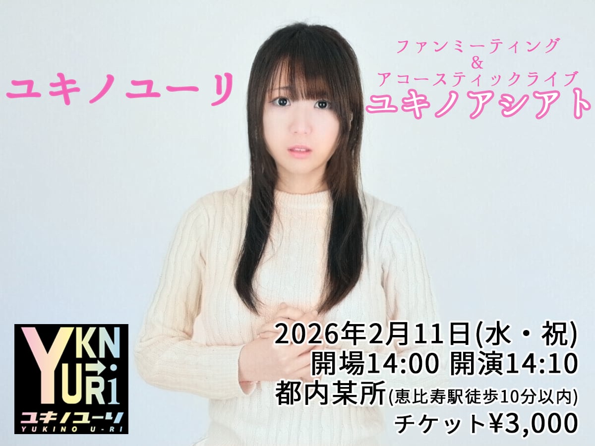 2/11(水・祝に)恵比寿駅近くの会場にて開催する単独ファンミーティング+アコースティックライブ「ユキノアシアト」の前売りご参加チケットとなります。